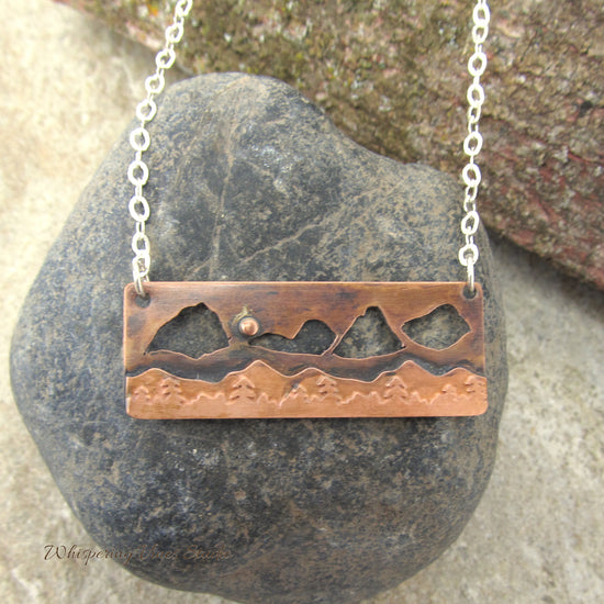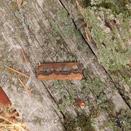 Enchanting Copper Mountain Cutout Bar Necklace with Sterling Silver Chain, One of a Kind