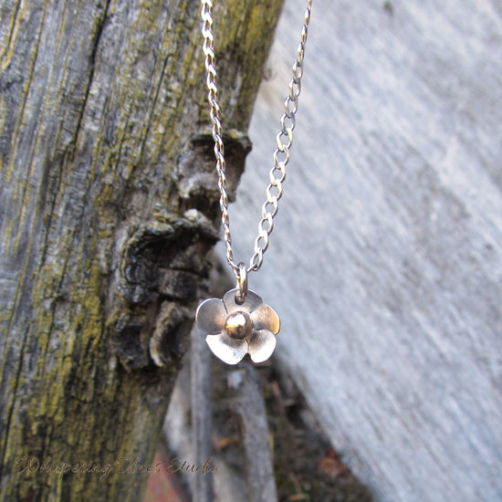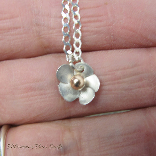 See the matching earrings at https://whisperingvinesstudio.com/products/handcrafted-sterling-silver-flower-post-earrings-with-14k-gold-filled-ball