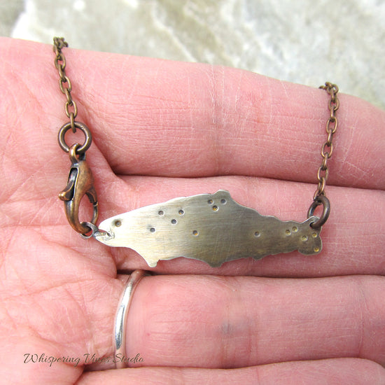 Handcrafted Sterling Silver Hooked Trout Pendant Necklace with Copper Chain